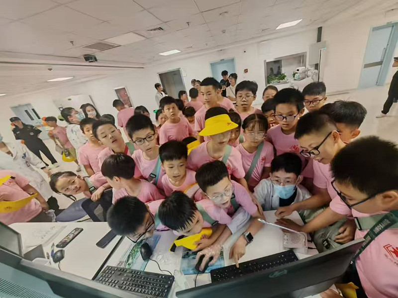 放射科里,醫(yī)生瞬間化身“魔術(shù)師”,把神秘小物件藏進白色方盒,再把CT機比作“透視眼”,讓孩子們親手觸摸滑軌、按下按鈕,仿佛真能把物體看穿;檢驗科里,全自動流水線此起彼伏,“機器人手臂”嗖嗖揮舞,孩子們圍著玻璃屏驚呼連連:“原來我的血常規(guī)是這樣‘變’出來的!”