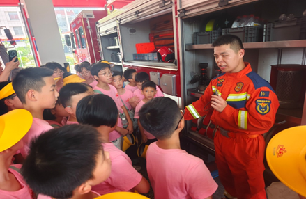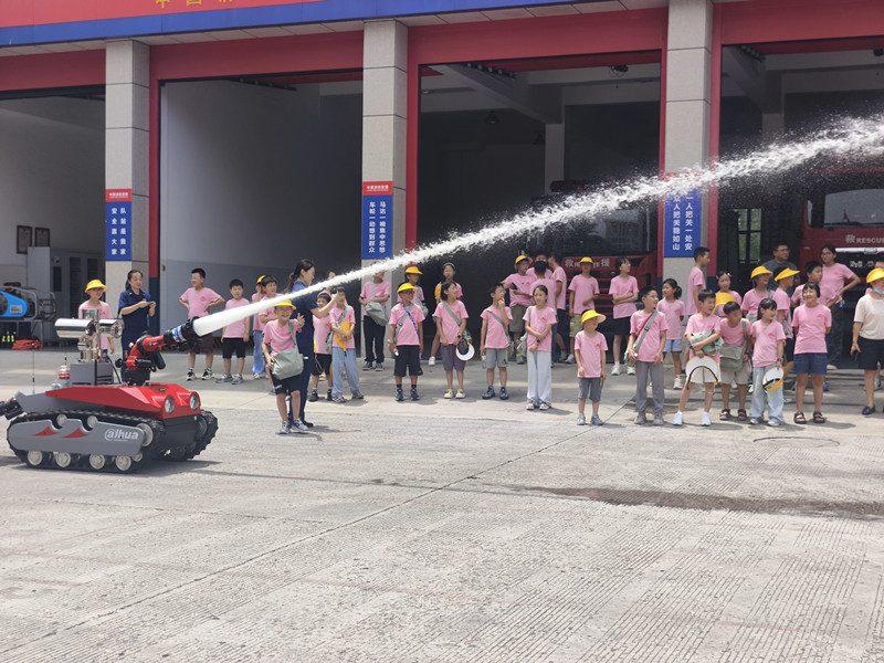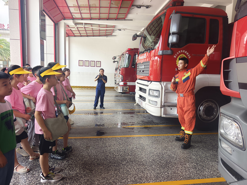 隨后,大家前往玉環(huán)市消防救援大隊,消防叔叔剛擺好攀爬架,膽子大點的孩子綁上安全防護爬上云梯就和消防員比速度;灑水車機器人旋轉(zhuǎn)噴水,水幕映出七色光;消防陳列館里,小小“英雄”們戴上頭盔、扛上水槍,過足了滅火癮。